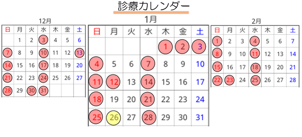 ■2026年1月診療カレンダー を更新しました。