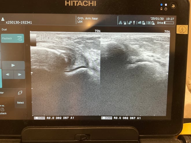 超音波観察機器を用いることで、 靭帯や関節の状態をリアルタイムに詳しく評価することができます 。レントゲンでは分かりにくい靭帯の損傷や腫れの程度、 関節内の状態などを確認し、 正確な患部の観察に基づいた適切な治療法をご提案いたします。