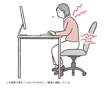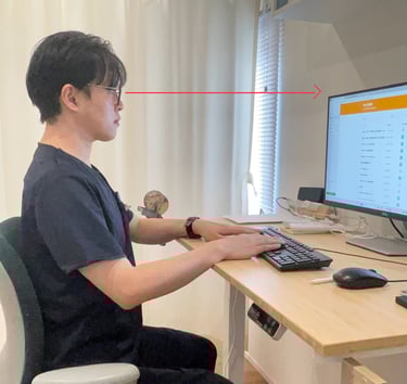 さらに、パソコン画面をのぞき込むような前かがみ姿勢は、頭の重