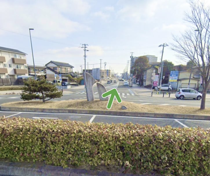 歩道をまたぎますので歩行者に注意してゆっくりお入りください。