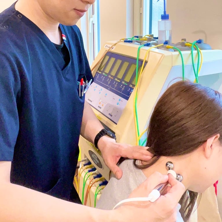スーパーテクトロン(医療用EMS)により低周波・中周波・高周波を発信し、 筋肉痛、神経痛など幅広い痛みに対して鎮痛効果を発揮します。