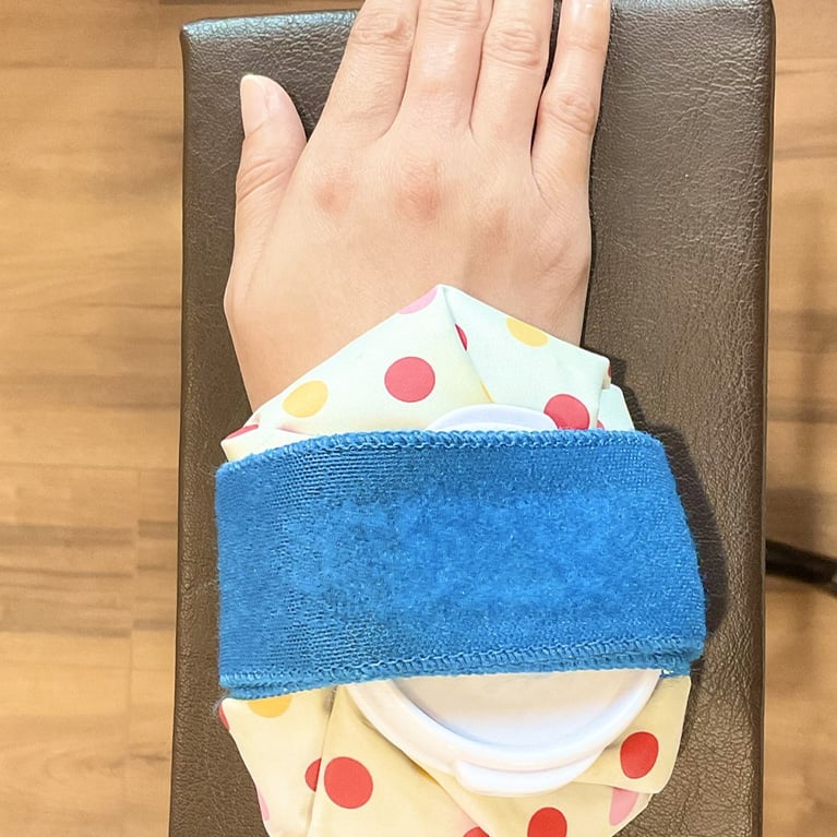 アイスパックやアイスマッサージにより受傷直後の損傷部の 血流を減らし出血と痛み物質の発生を抑えます。