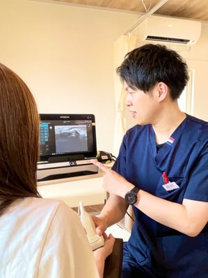 ケガの際に患部の組織の状態を正確に把握するために超音波検査などを実施しております。ケガの際に使用する超音波検査は人体に無害であり、レントゲンにも写らない細かい骨折や損傷した筋、腱、靭帯や関節軟骨のすりへりなども観察することができます。